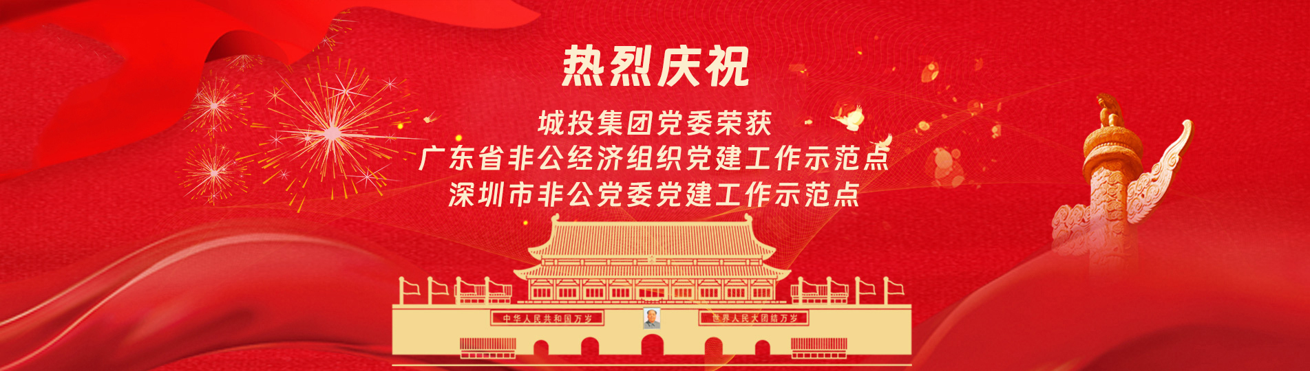 在上級黨委的正確領導下,在城投集團的大力支持下,集團黨委緊緊圍繞企業發展戰略,將黨建引領核心貫穿始終,以五心工程(即思政建設核心工程、經營發展中心工程、企業文化向心工程、黨建品牌匠心工程、服務基層愛心工程)為抓手,大膽探索,勇于突破和創新,不斷形成城投黨建特色,有效輸出城投實踐經驗,充分發揮紅色引擎作用,先后獲得深圳市非公黨委黨建工作示范點深圳市兩新組織黨建工作示范點、深圳市文明單位、深圳市先進基層黨組織、廣東省非公有制經濟領域黨建工作示范點等榮譽稱號。
